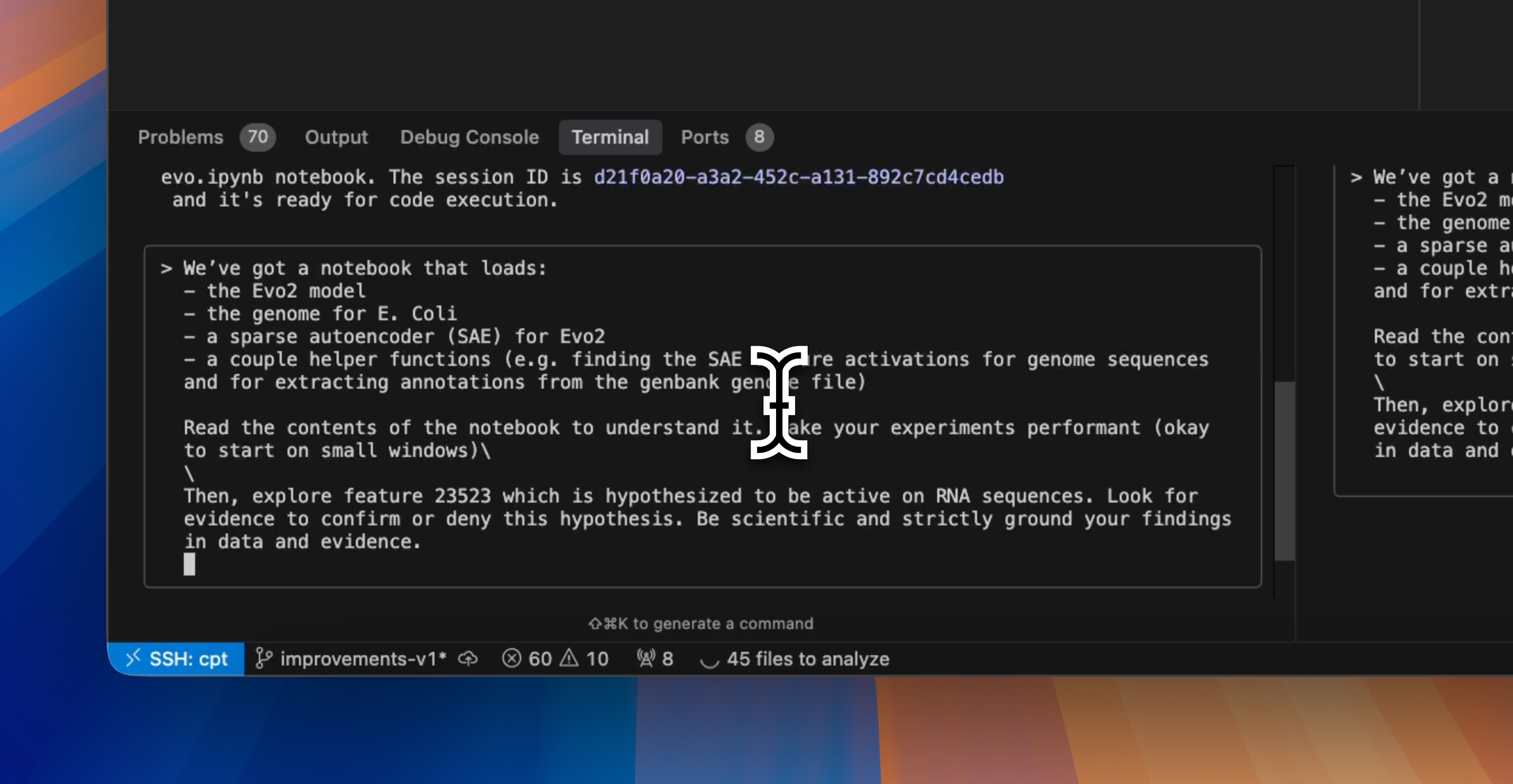 We’ve found that when agents use scripts to execute code, they are often reluctant to edit existing files, preferring instead to create new versions with changes applied. The result is a disorganized mess of near-duplicate files with confusing names like run_analysis.py run_analysis_new.py run_analysis_parallel.py run_analysis_fixed_parallel.py. Without notebooks, agents also tend to produce a mess of image file outputs, leading to extremely cluttered and confusing projects.